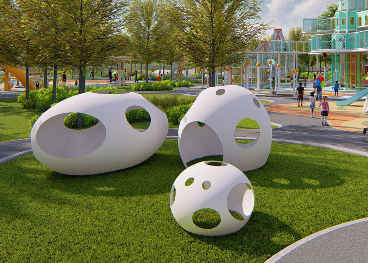 景观规划:景观手法规划场地,形成交互,增强体验。 流线空间:提取历史文化,植入到空间,形成空间变化。 设备植入:独特的造型、肌理、色彩等融入到场景当中。 场景表达:空间串联,打破常规,塑造特色的主题乐园。 故事串联:利用故事吸引流量,给运营打造良好的基础。 产品运营:文化结合设计,让儿童在游玩的同时了解当地文化。