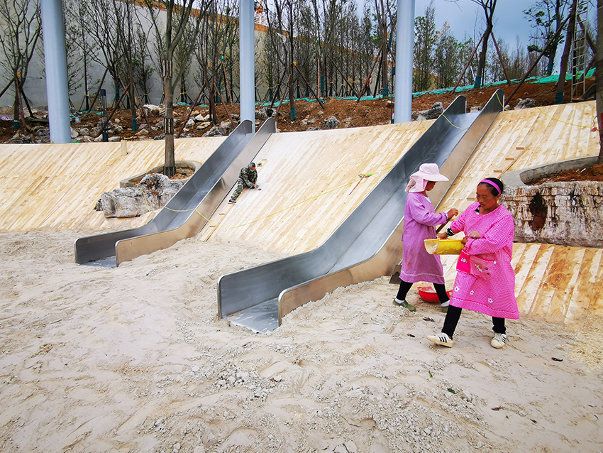 九游体育平台官方网站本次的施工项目就是坐落在贵阳中铁云湾,利用不锈钢景观滑梯的特点,打造与环境和谐的人为景观,为孩子们提供玩耍有趣的休闲环境。