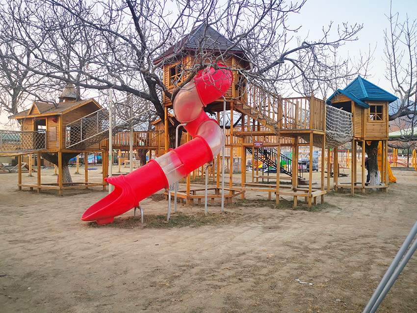 树屋与螺旋滑梯组合在一起,增加了可玩性,让孩子体验不一样的快乐。