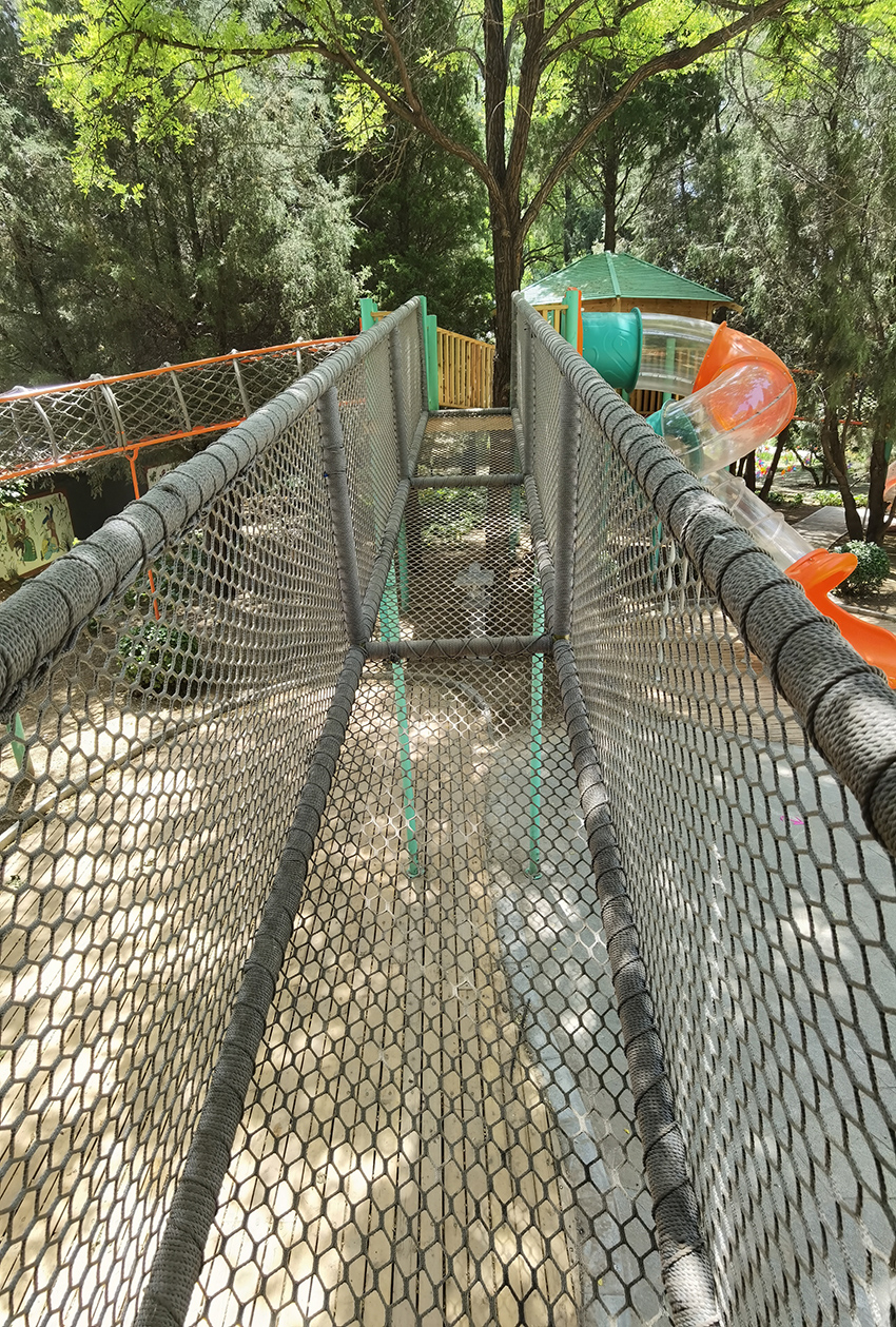 绳网桥,走在上面是不是 有空中行走的感觉,相当锻炼孩子们的胆量了。
