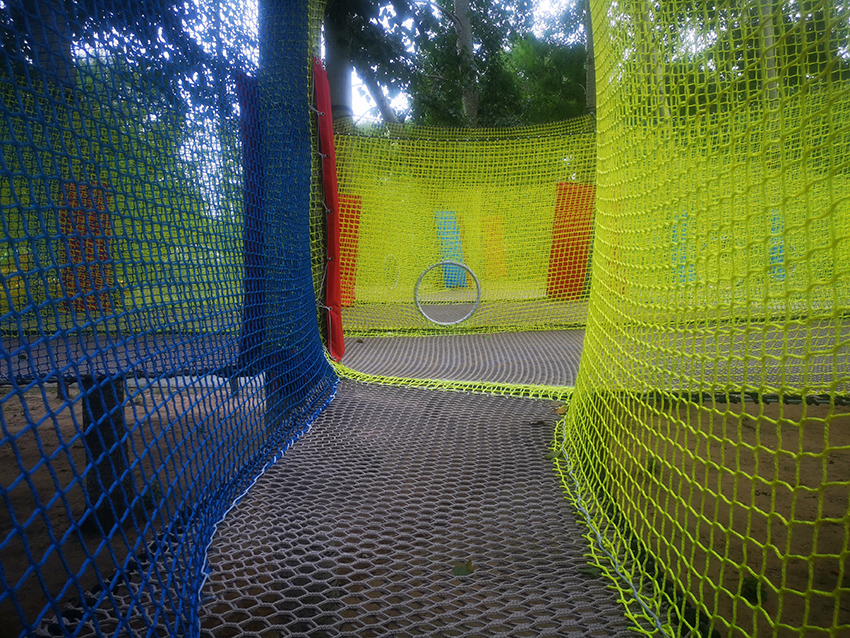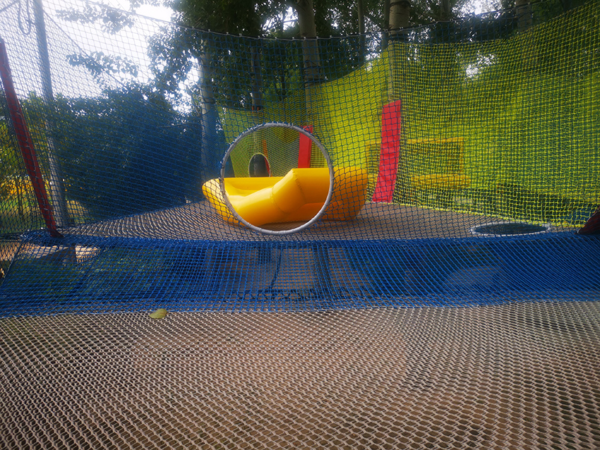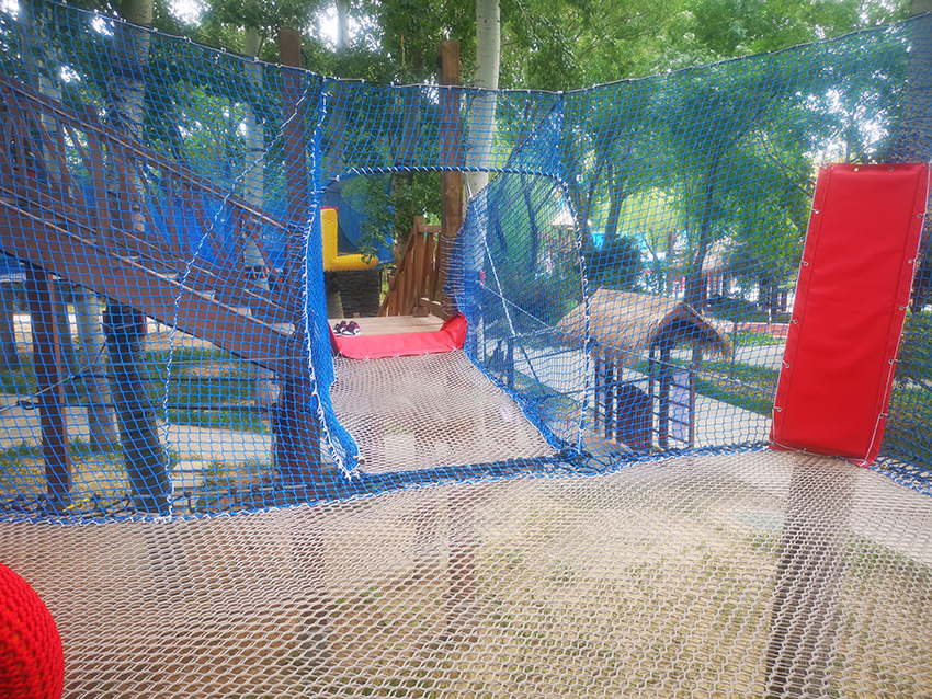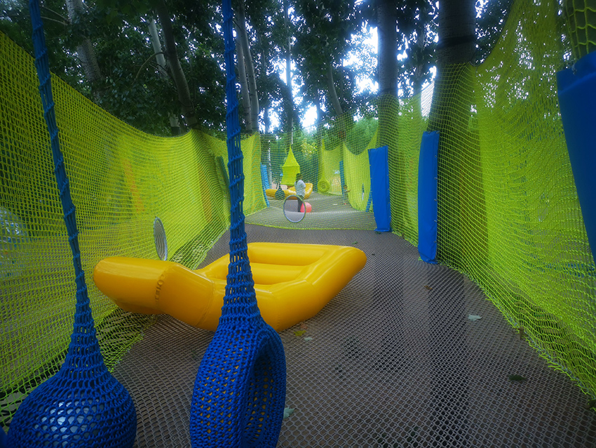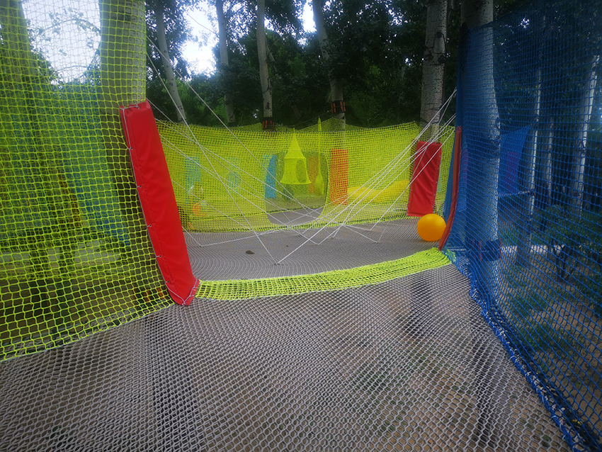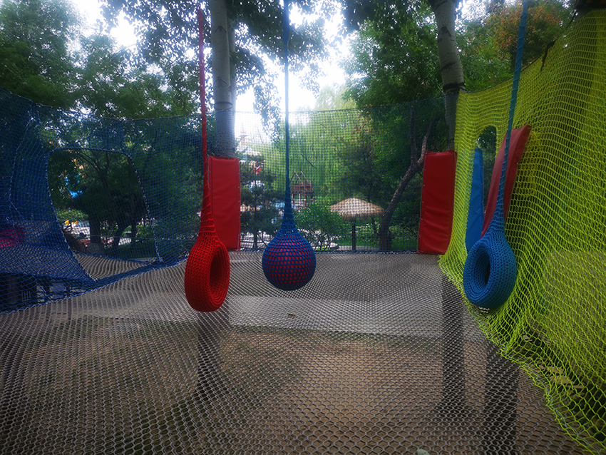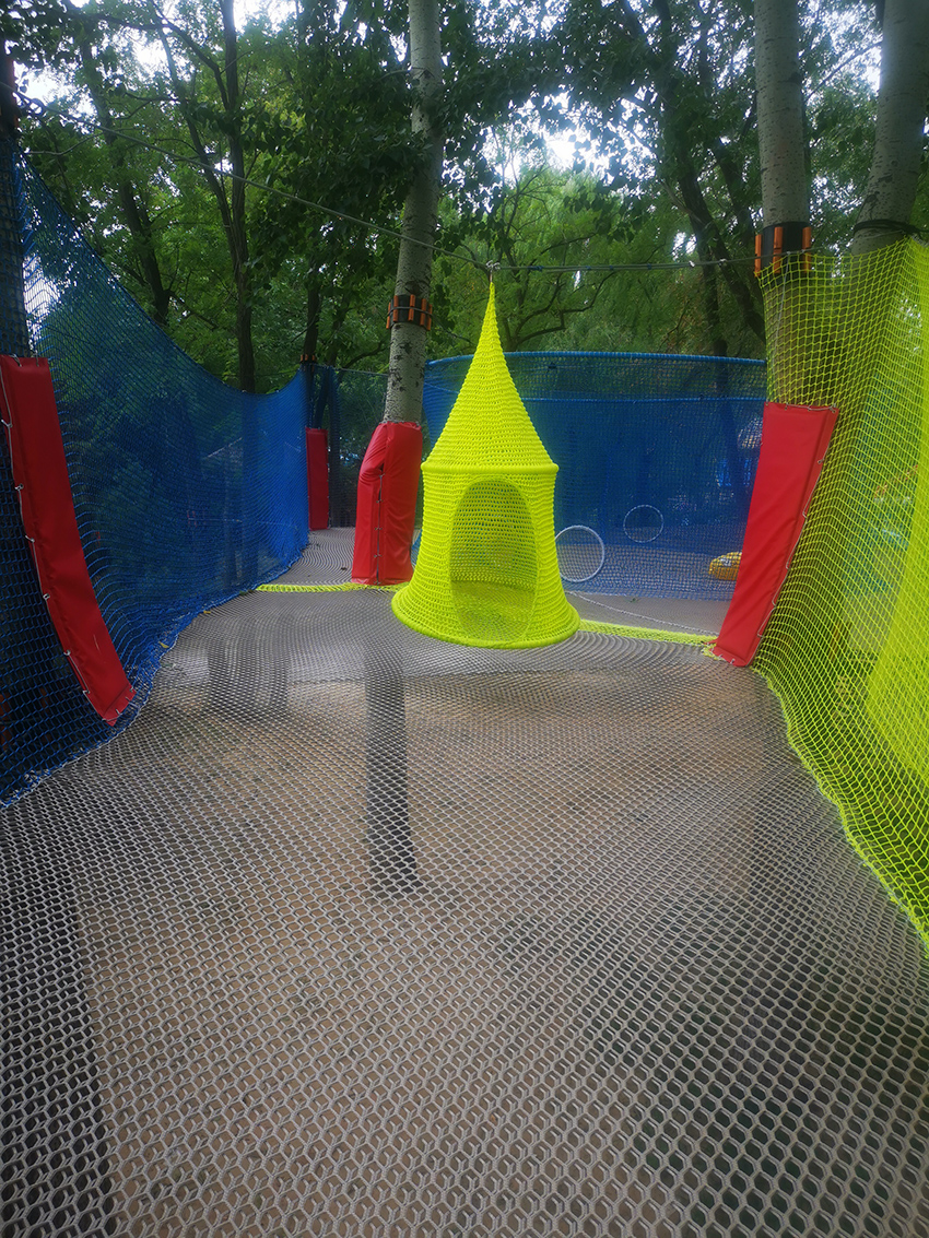 带有绳子拦截的障碍区域,增加玩耍的难度,锻炼孩子们的应对能力。