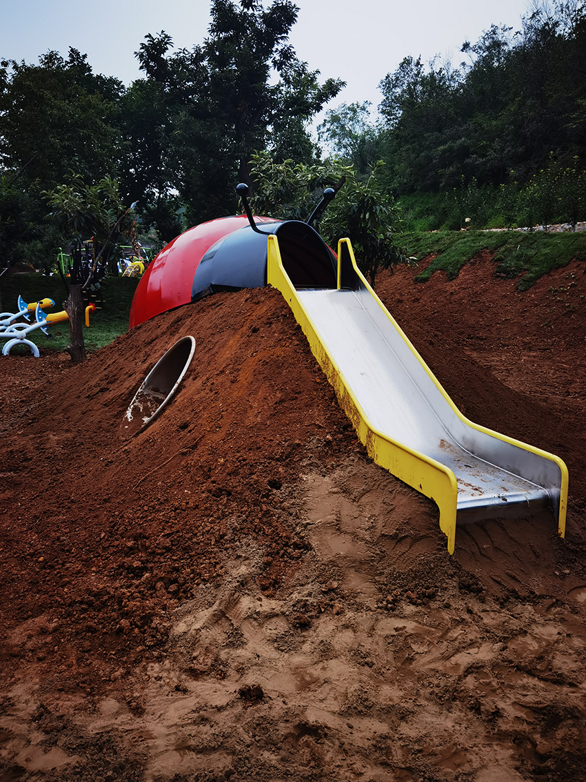 破土而出的七星瓢虫,采用动物与滑梯的结合,充满童趣,又具可玩性。