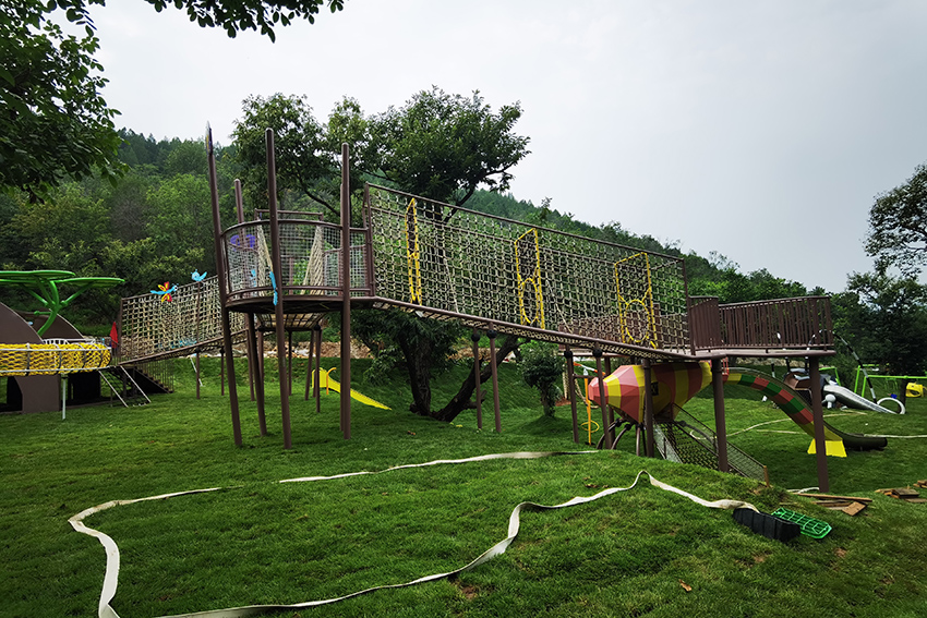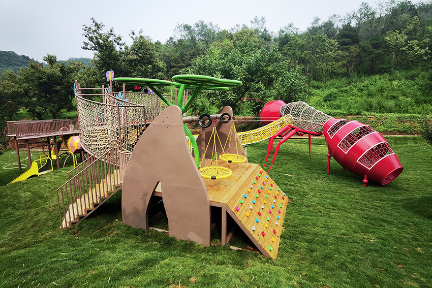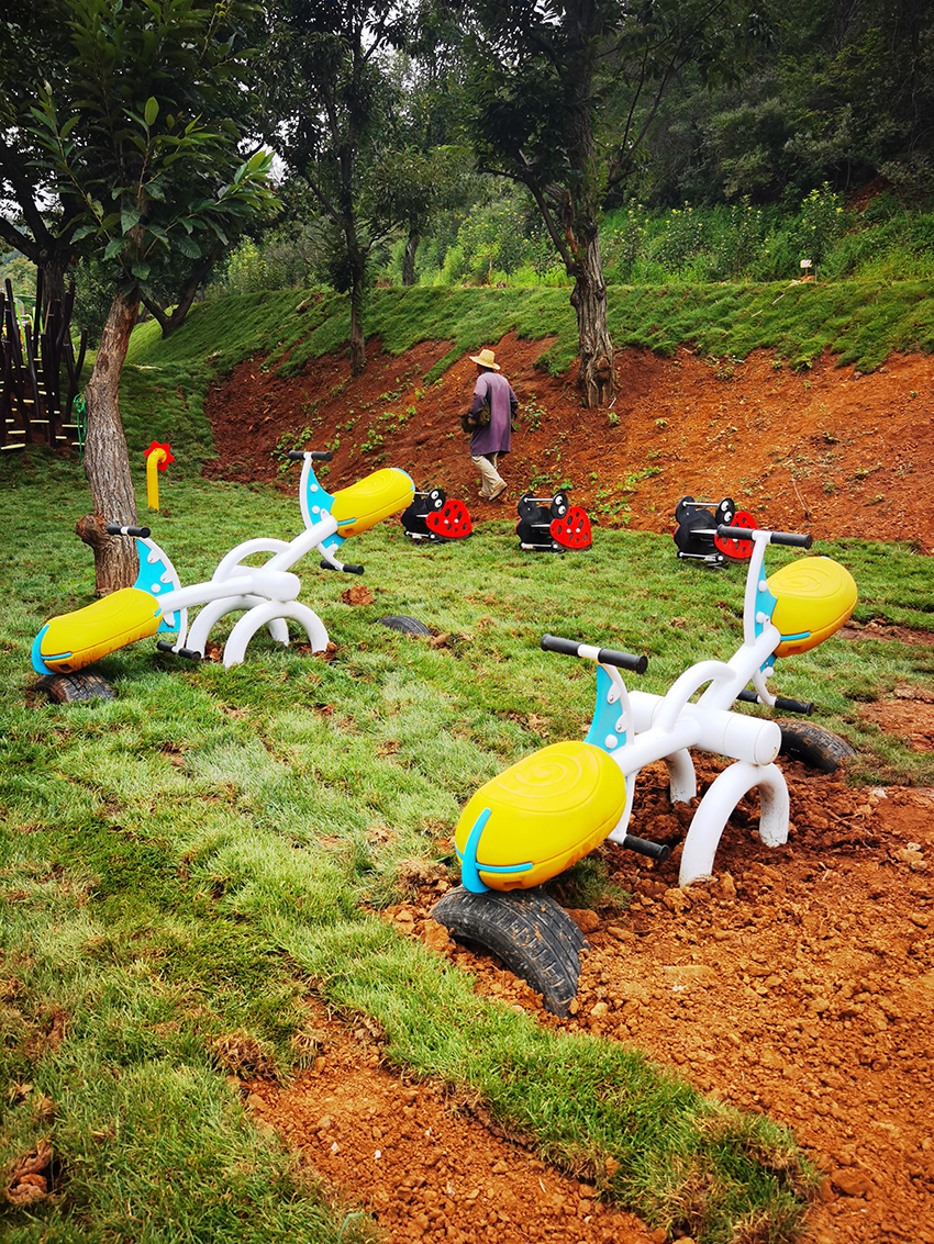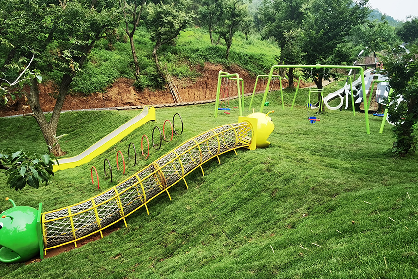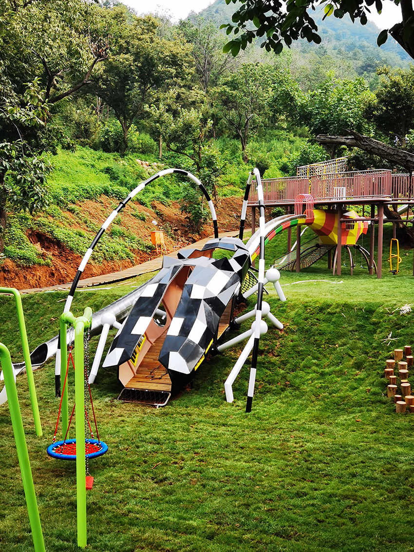 北京平谷嘻谷拾光无动力儿童乐园坐落在平谷大华镇,整座儿童乐园以草坪为底色,结合各种动物造型的无动力游乐设施,就是一座天然的昆虫世界。蚂蚁、瓢虫、天牛、蜻蜓…可爱呆萌极了。九游体育平台官方网站将将科学和 游乐有机融入到自然之中,再结合阶梯式地形建有秋千、滑梯、爬网、滑索、荡桥、蹦床等等让孩子体验到钻、攀、爬、跑、跳、滑等不同的乐趣。